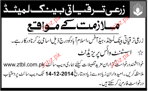 Assistant Vice President Job in Zari Tariqati Bank Ltd