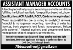Latest Industrial Group Accounting Posts Lahore 2025