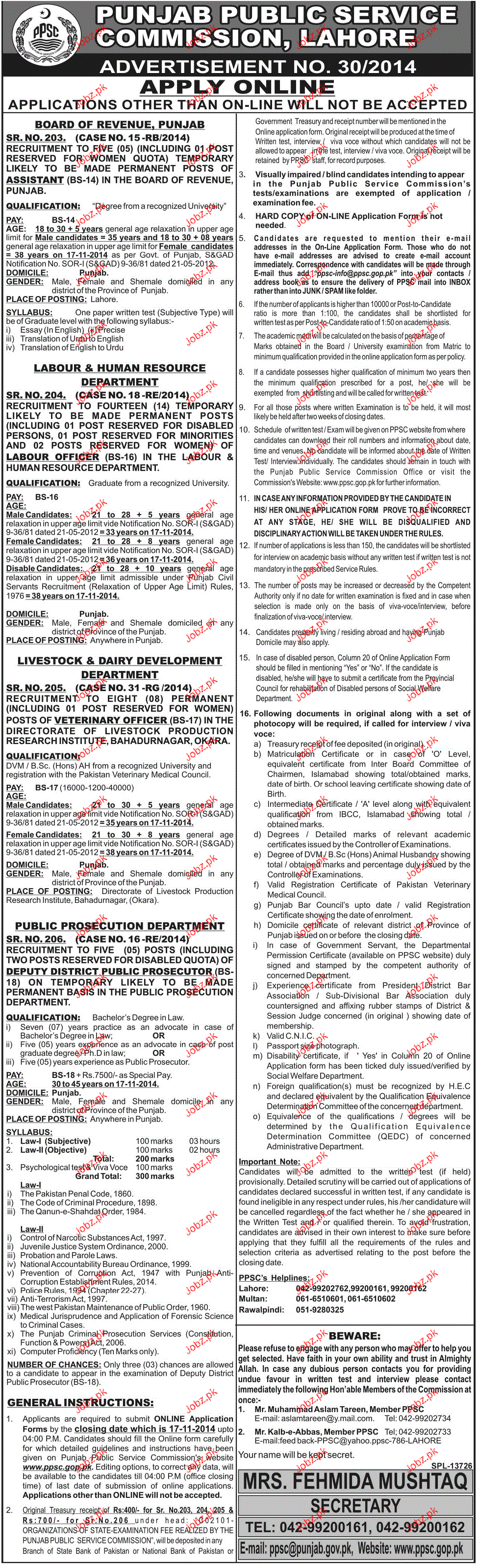 Assistants, Labour Officers, Veterinary Officer Job in PPSC