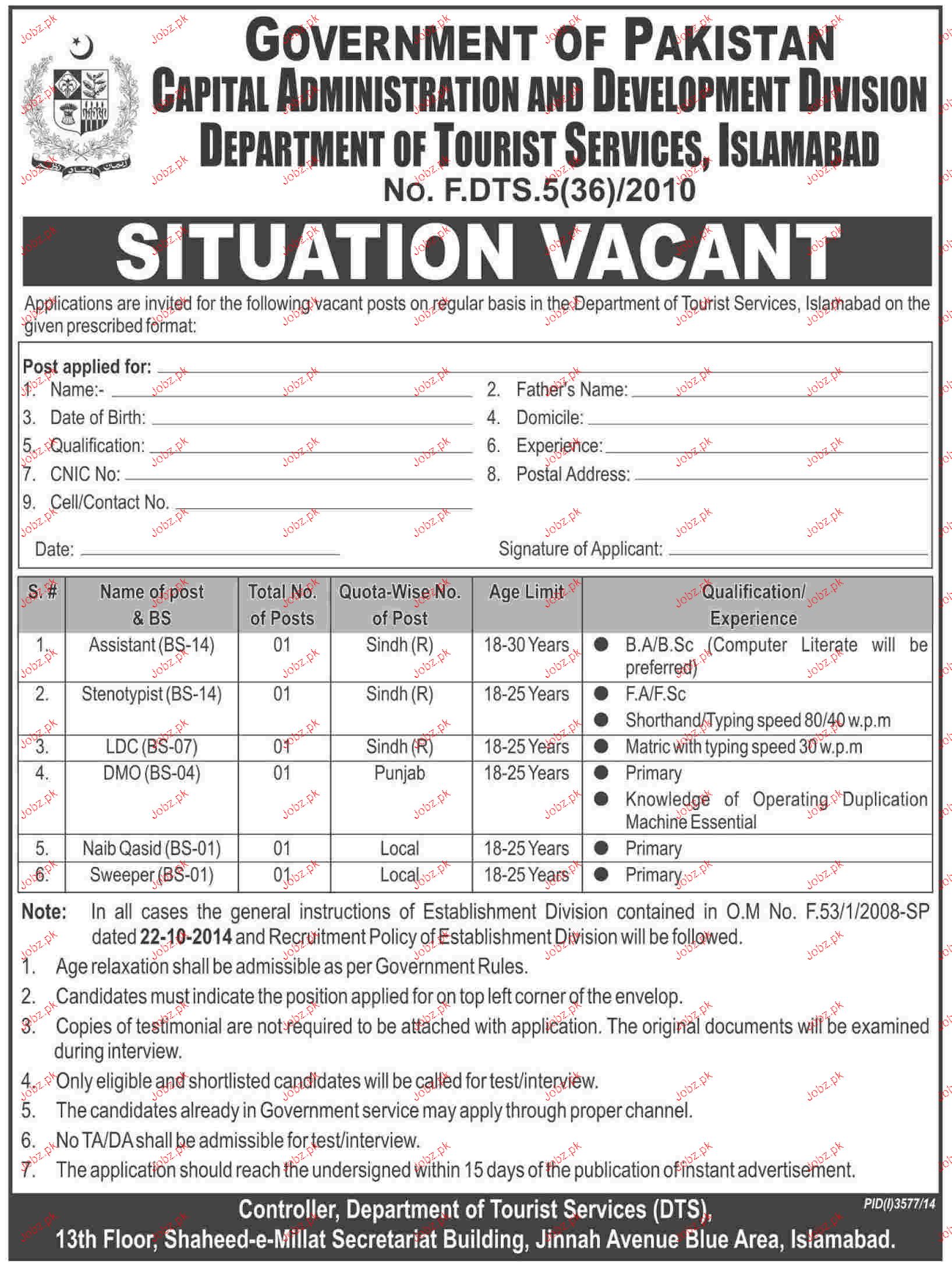 Assistants, LDC, DMO, Naib Qasid Job In Capital Administrati