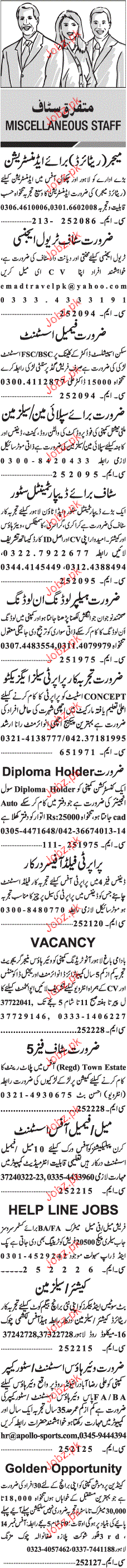 Assistants, Salesmen, Helpers, Cashiers Job Opportunity