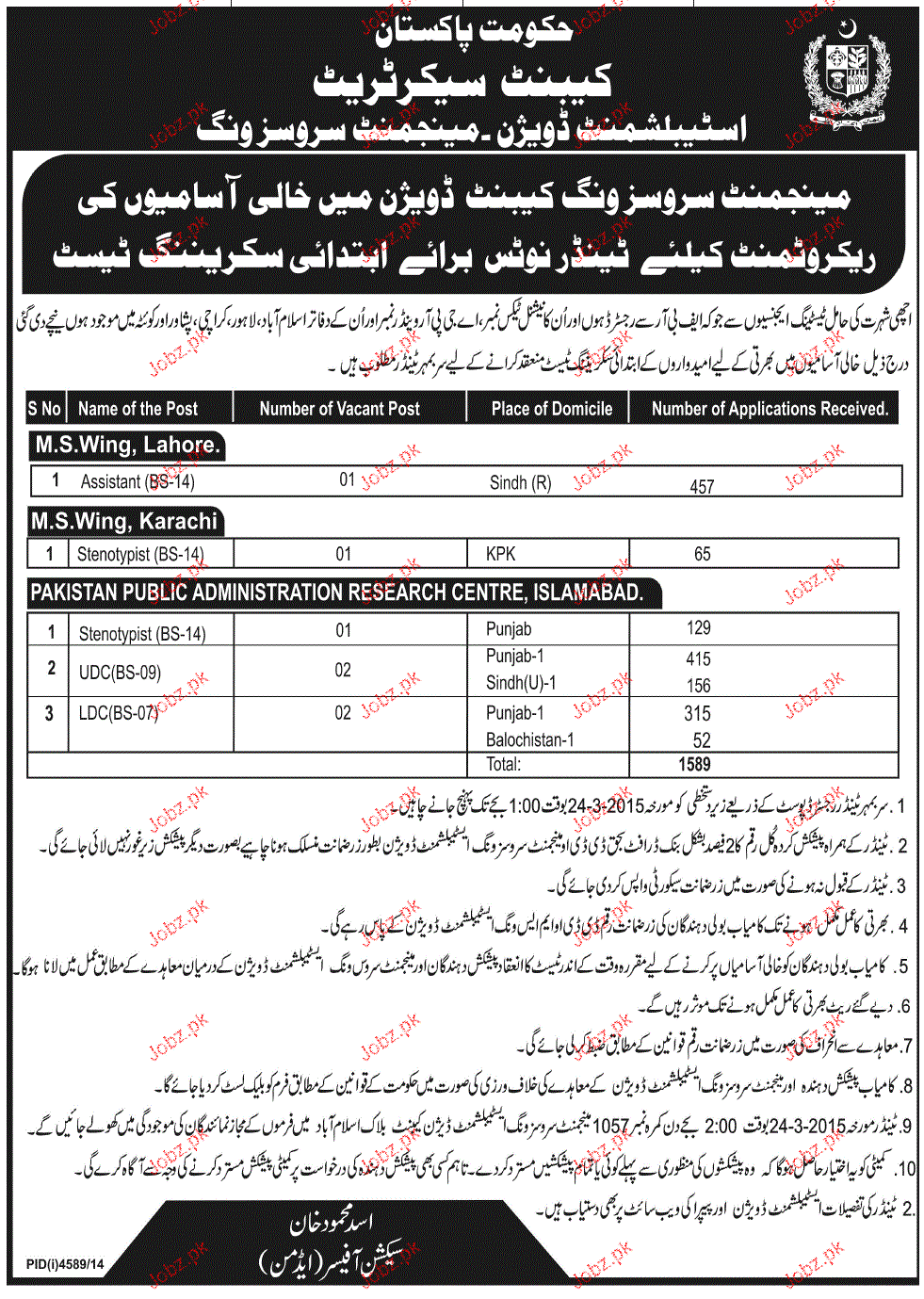 Latest Cabinet Division Admin Clerical Posts Islamabad 2025