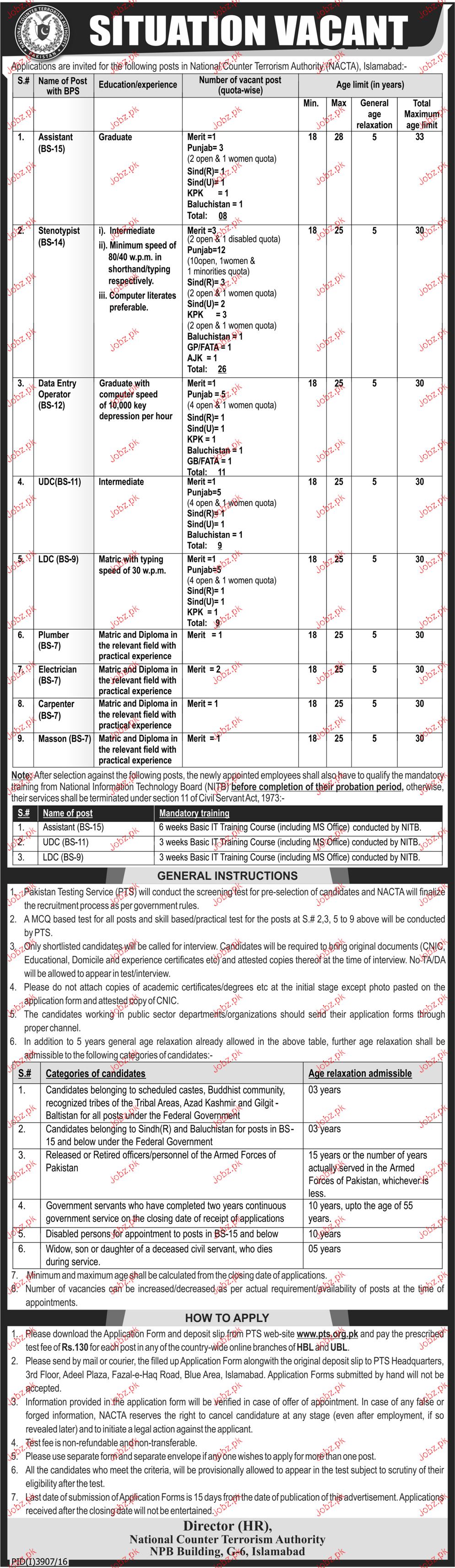 Apply as per details in job advertisement. Login to view further details of how to apply via https://www.jobz.pk online.