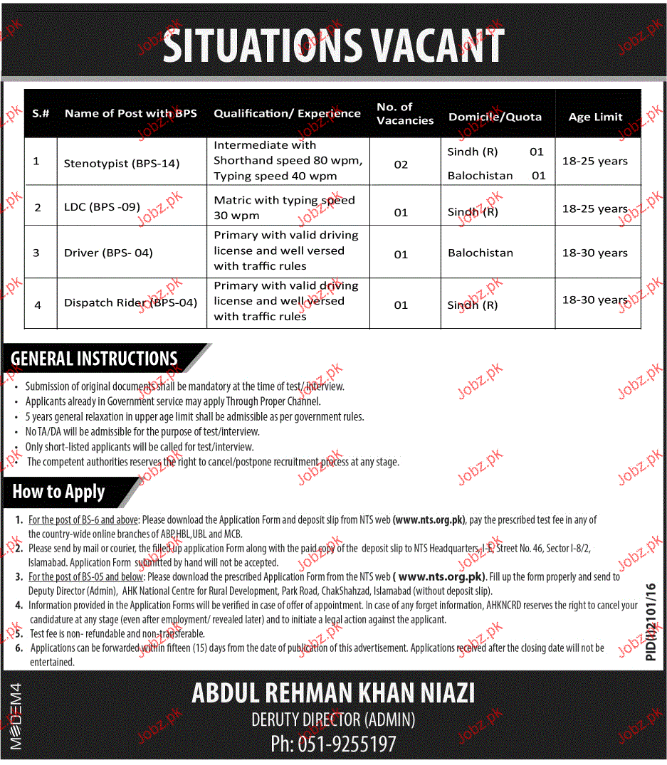 Apply as per details in job advertisement. Login to view further details of how to apply via https://www.jobz.pk online.