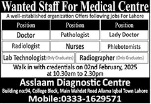 Latest Asslaam Diagnostic Center Medical Posts Lahore 2025
