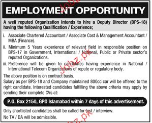 Apply as per details in job advertisement. Login to view further details of how to apply via https://www.jobz.pk online.