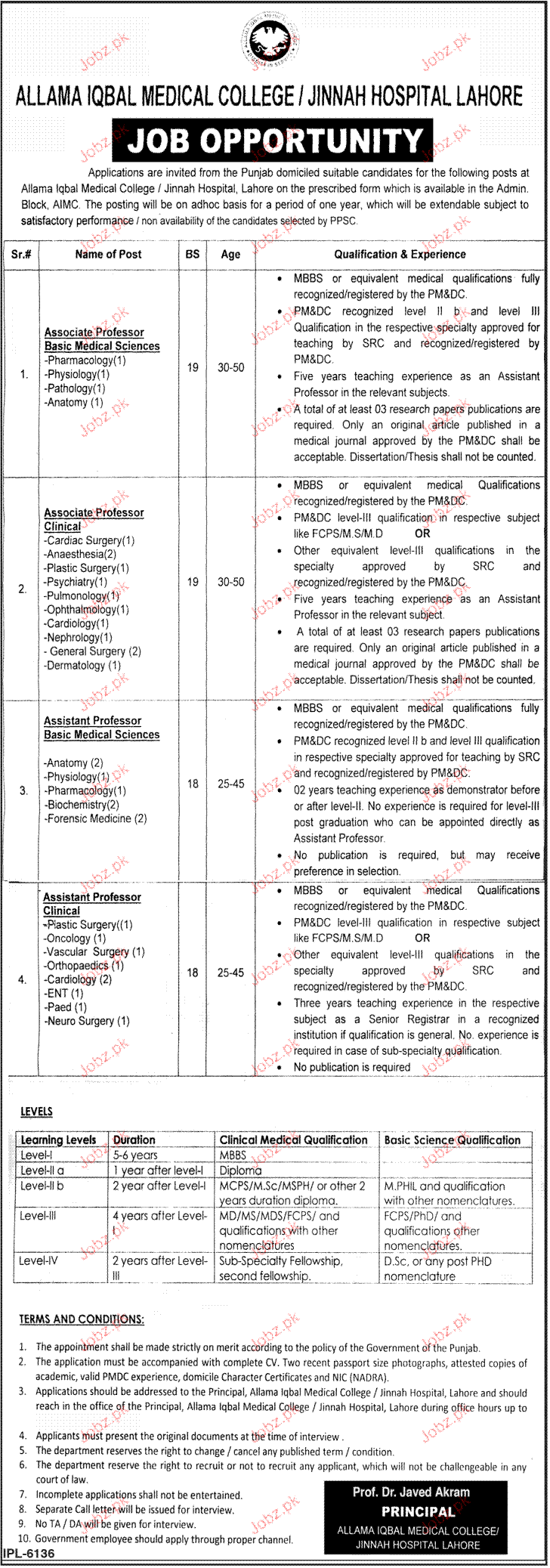 Latest Allama Iqbal Medical College & Jinnah Hospital Teaching Posts Lahore 2025