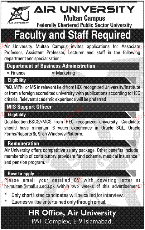 Apply as per details in job advertisement. Login to view further details of how to apply via https://www.jobz.pk online.