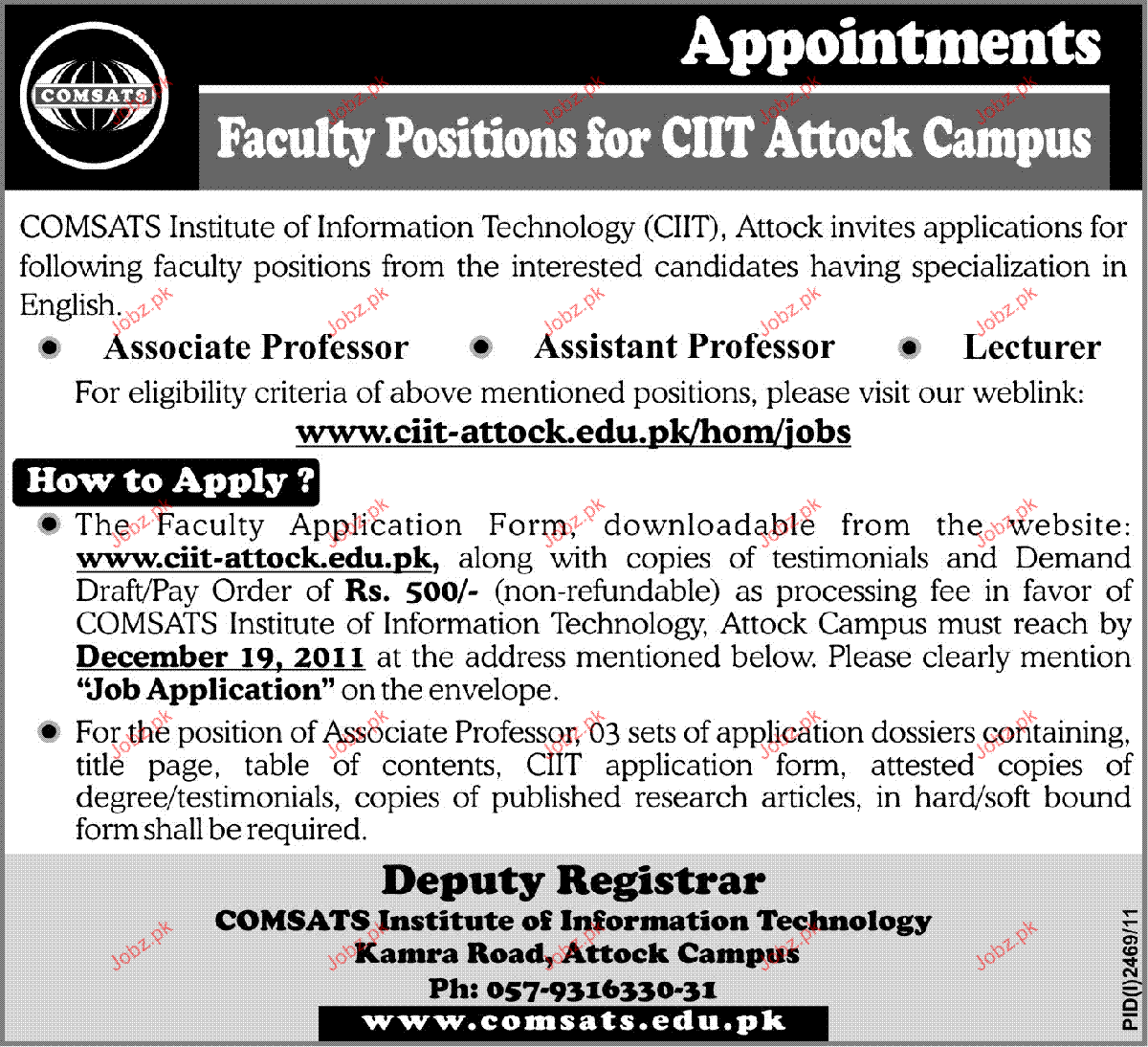 Apply as per details in job advertisement. Login to view further details of how to apply via https://www.jobz.pk online.