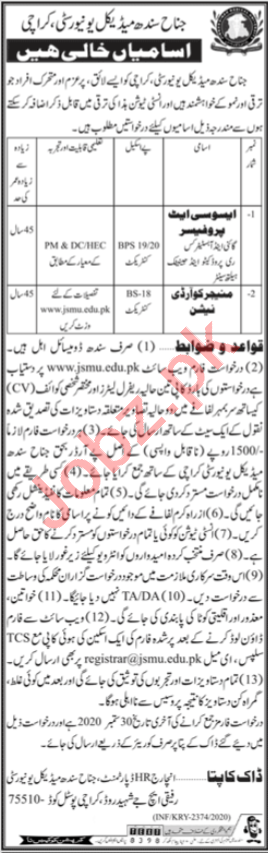 Associate Professor & Manager Jobs 2020 In JSMU Karachi
