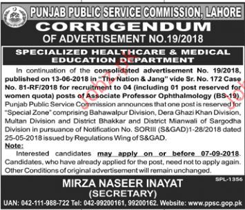 Associate Professor Opthalmology Jobs In PPSC Lahore