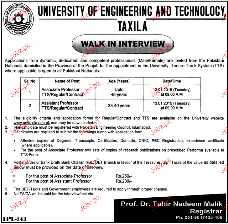 Apply as per details in job advertisement. Login to view further details of how to apply via https://www.jobz.pk online.