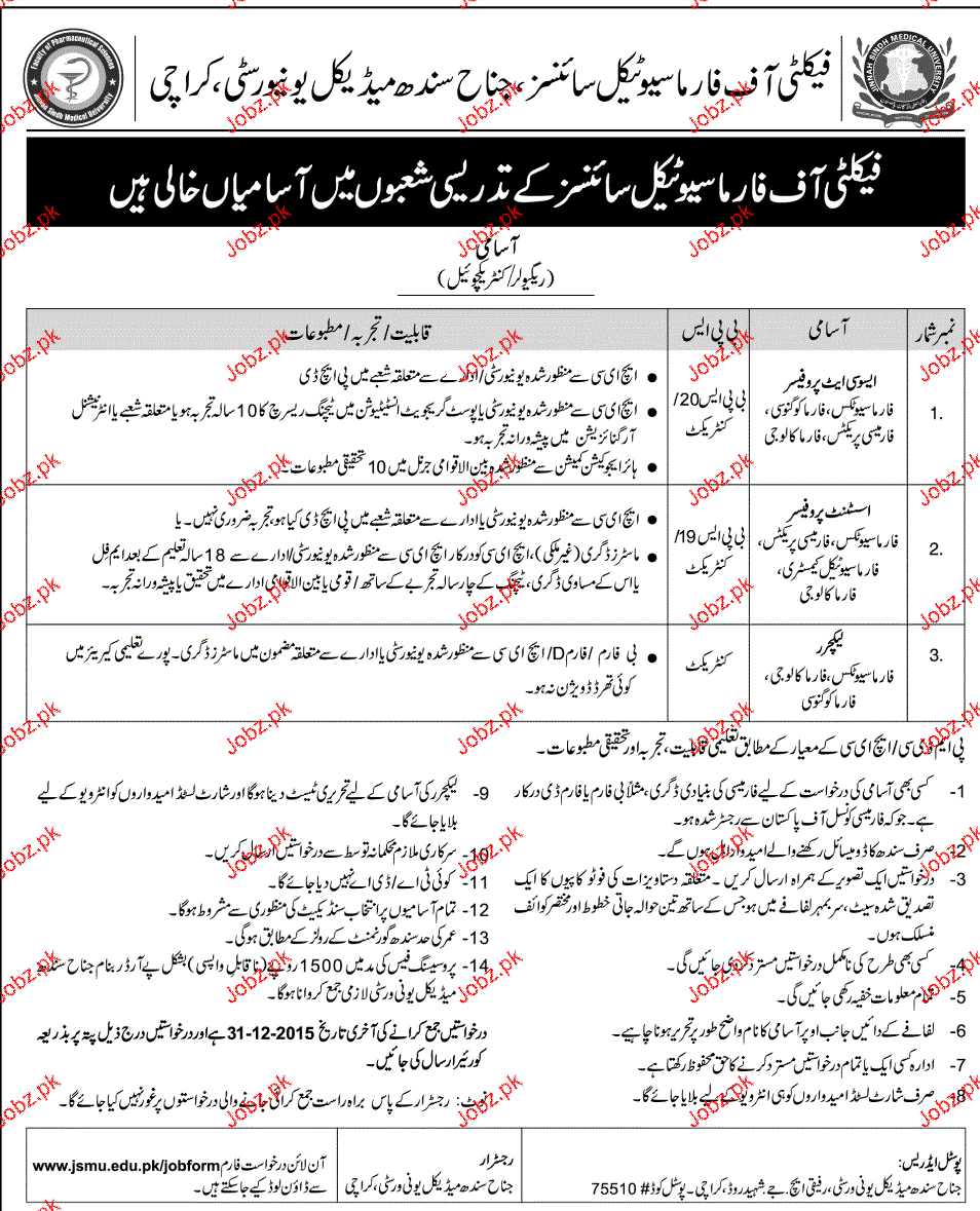 Apply as per details in job advertisement. Login to view further details of how to apply via https://www.jobz.pk online.
