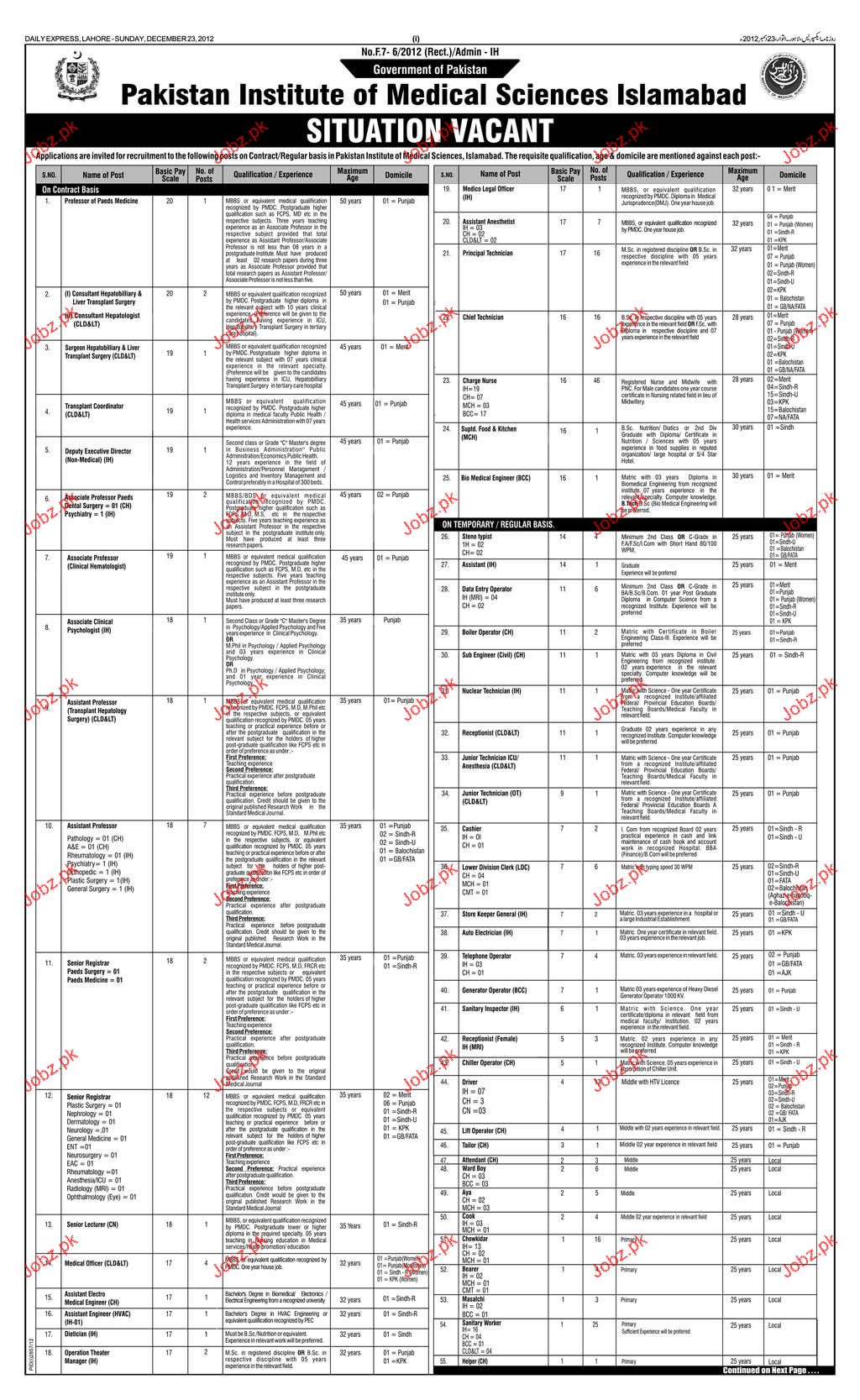 Apply as per details in job advertisement. Login to view further details of how to apply via https://www.jobz.pk online.