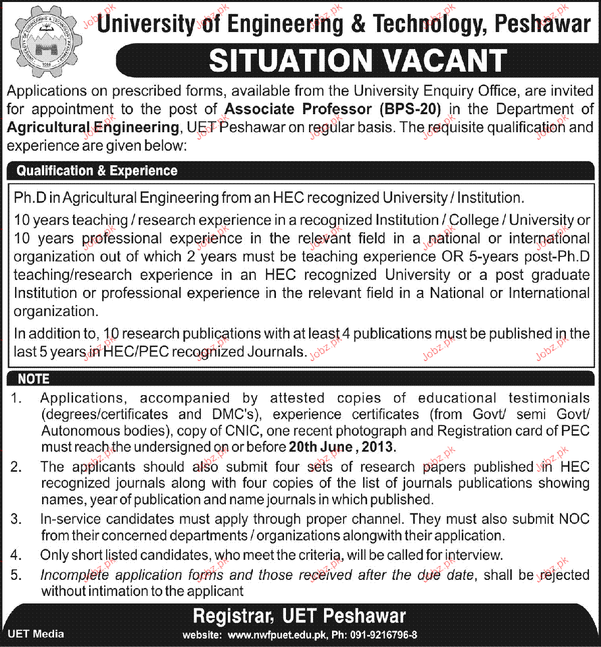 Apply as per details in job advertisement. Login to view further details of how to apply via https://www.jobz.pk online.