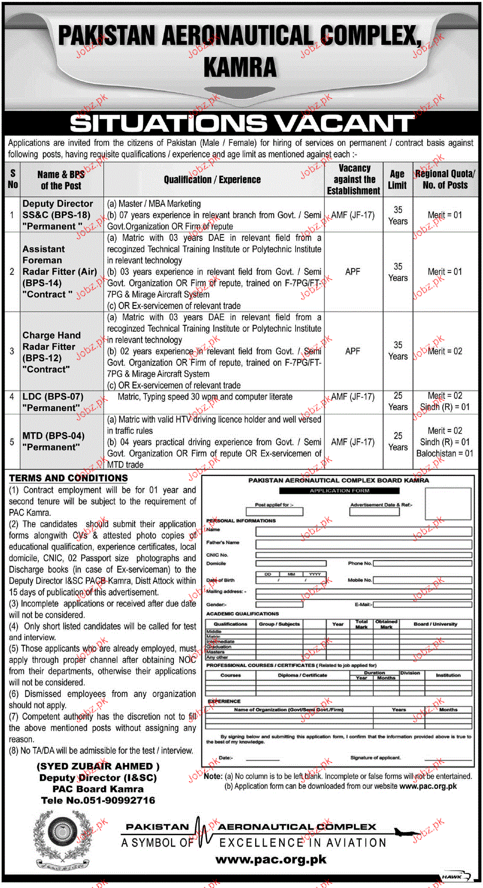 Apply as per details in job advertisement. Login to view further details of how to apply via https://www.jobz.pk online.