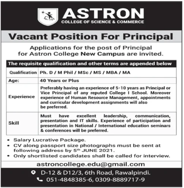 Latest Astron College of Science & Commerce Education Posts Rawalpindi 2025