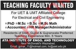 Latest ATA Institute of Engineering & Technology Teaching Posts Wazirabad 2025