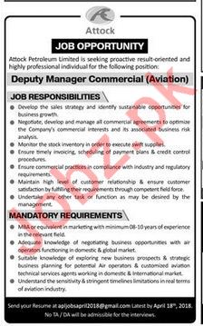Attock Petroleum Limited APL Islamabad Jobs 2018 Manager