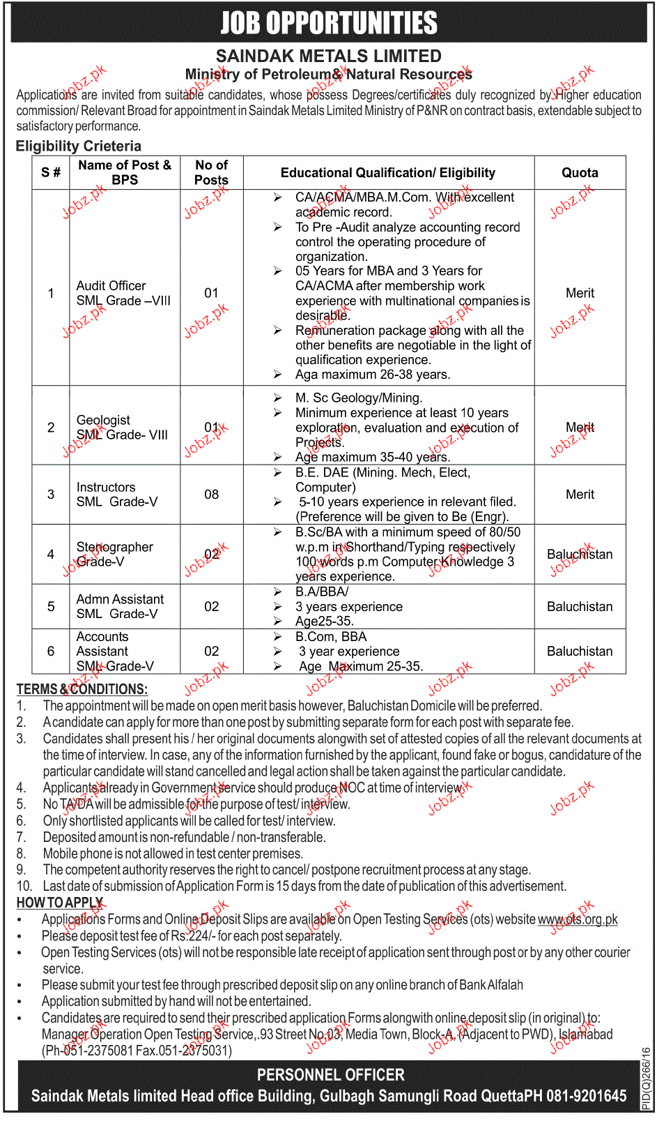 Apply as per details in job advertisement. Login to view further details of how to apply via https://www.jobz.pk online.