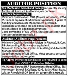 Latest SLS Montessori School and College Accounting Posts Rawalpindi 2025