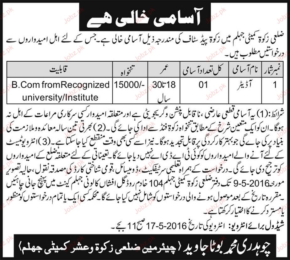 Latest District Government Admin Clerical Posts Jhelum 2025