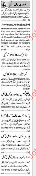 Apply as per details in job advertisement. Login to view further details of how to apply via https://www.jobz.pk online.