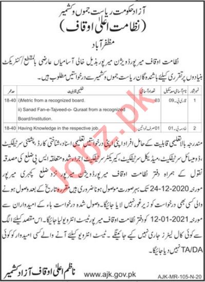 Auqaf & Amoor E Dinia Department AJK Jobs 2020