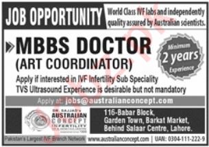 Vacant posts including mbbs doctor and doctor are announced in Australian Concept Infertility Medical Center Lahore, lahore Punjab Pakistan as per 13 November 2022 advertisement in daily Jang Newspaper. Candidates with MBBS etc. educational background will be preferred.