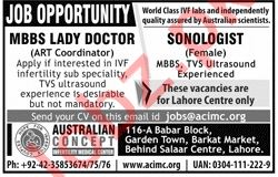 Latest Australian Concept Infertility Medical Center Medical Posts Lahore 2025