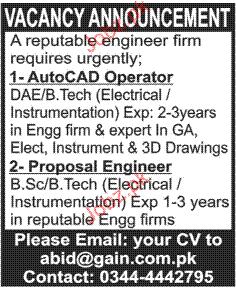 Auto Cad Operators And Proposal Engineer Job Opportunity