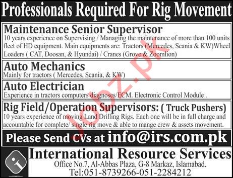 Latest International Resource Services Engineering Posts Islamabad 2025