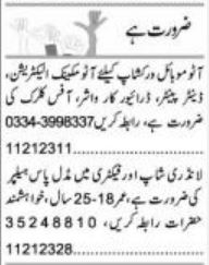 Private Company jobs advertisement dated about 17 March 2022 in daily Express Newspaper invites application for the vacant post of clerk, auto mechanic, office clerk, car washer, electrician, driver, painter, denter and helper in Karachi, karachi Sindh Pakistan. Persons with Bachelor, Intermediate, Middle and Matric etc. education can apply.