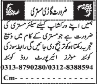Auto Mechanic & Mechanic Jobs 2022 In Quetta