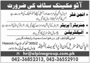 Al Pine Industrial Cone Pvt Ltd jobs advertisement dated about 26 June 2022 in daily Jang Newspaper invites application for the vacant post of engine fitter, electrician and generator operator in Lahore, lahore Punjab Pakistan. Educational qualifications required Matric, Middle and Primary etc.