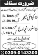 Vacant posts including store incharge and quality manager are announced in Auto Parts Manufacturing Company Lahore, lahore Punjab Pakistan as per 25 August 2024 advertisement in daily Jang Newspaper. Preferred Education is Bachelor and B.com etc.