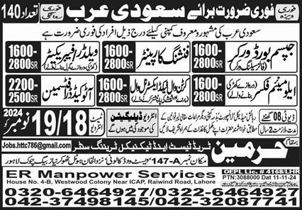 Latest Manufacturing jobs and others Overseas jobs in Harmain Trade Test & Technical Training Center closing date is around November 19, 2024, see exact from ad. Read complete ad online to know how to apply on latest Harmain Trade Test & Technical Training Center job opportunities. Salary varies from 207000. Overtime is allowed. During job transport, accommodation and medical facility is available.