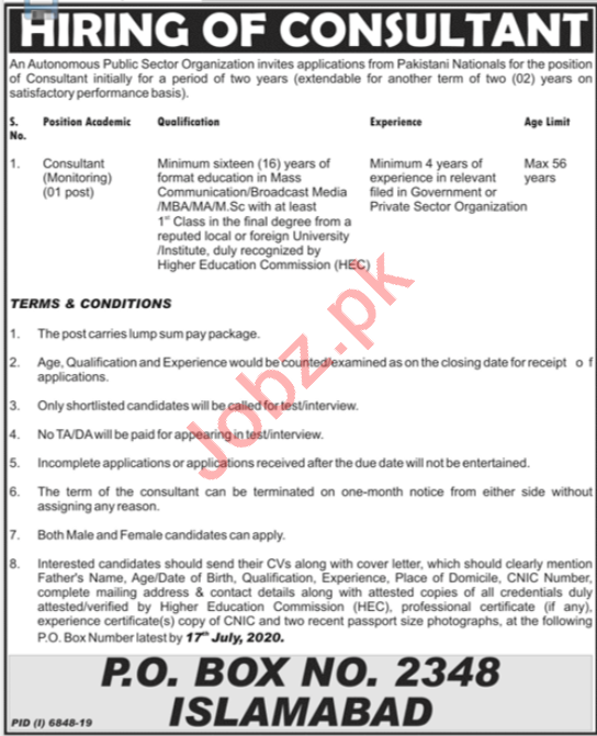 Latest Public Sector Organization Consultant Posts Islamabad 2025