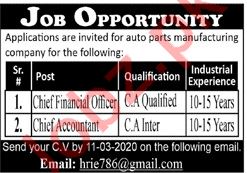Latest Auto Parts Manufacturing Organization Accounting Posts Lahore 2025