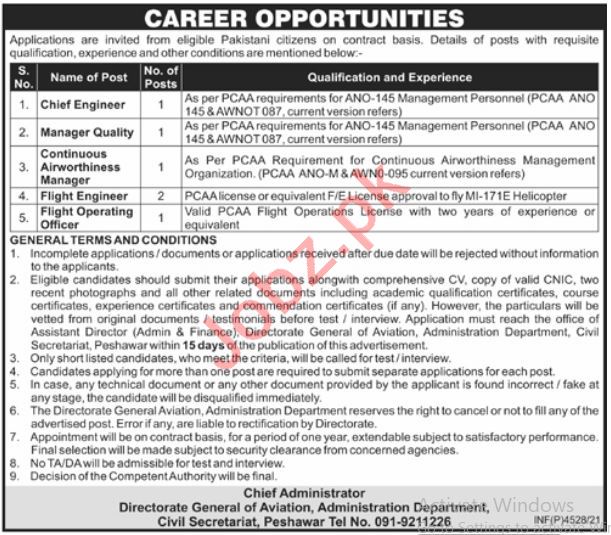 Vacancies in Directorate of General of Aviation Administration Department Advertisement September 2021