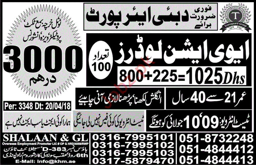 Latest SHALAAN & GL Overseas Employment Promoters Labor Posts Dubai 2025