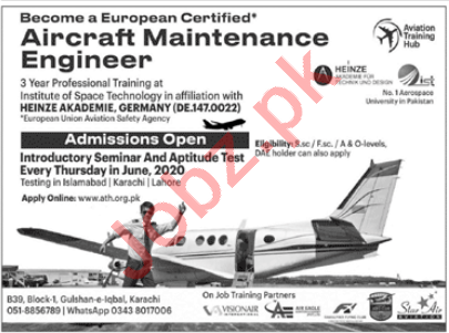 Aviation Training Hub ATH Karachi, Pakistan is announcing admissions fall 2020 for the classes of 3 Year Professional Training Aircraft Maintenance Engineer. Read newspaper ad for exact details.