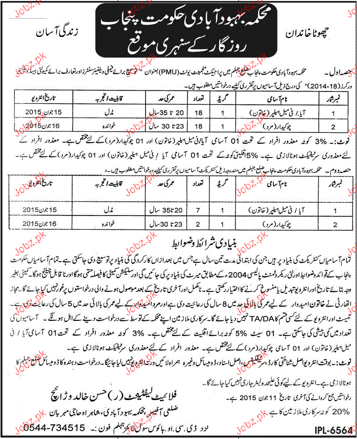 Aya and Chawkidars Job in Population Department