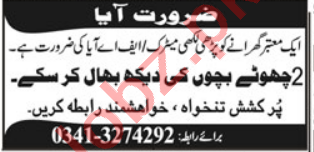 Aya & House Maid Jobs 2021 In Muzaffarabad
