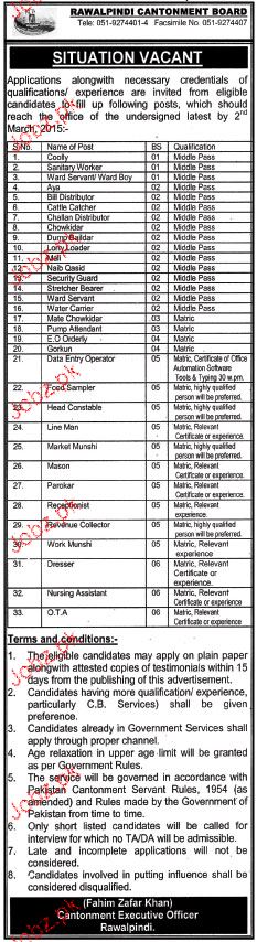 Latest Cantonment Board Labor Posts Rawalpindi 2025