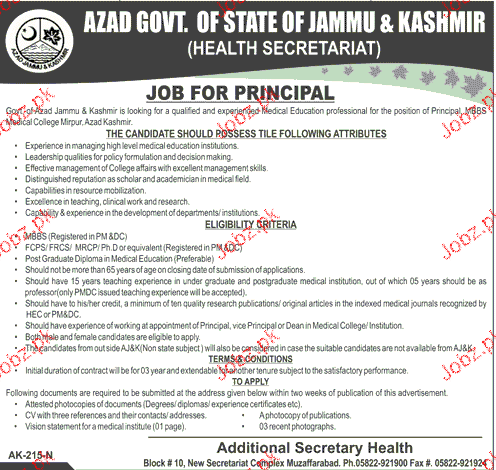 AZad Jammu & Kashmir Health Secretariat Jobs