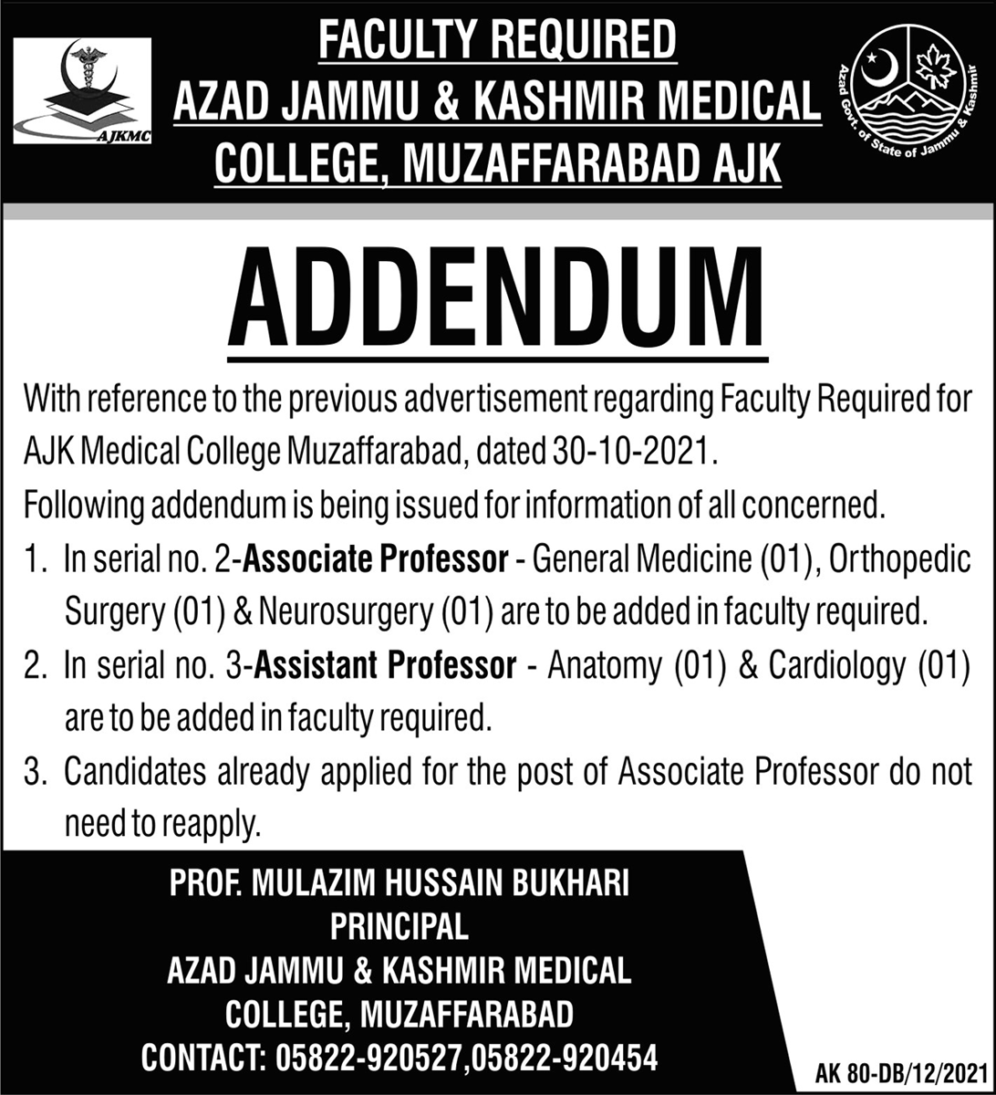 Vacancies in Azad Jammu & Kashmir Medical College Advertisement December 2021