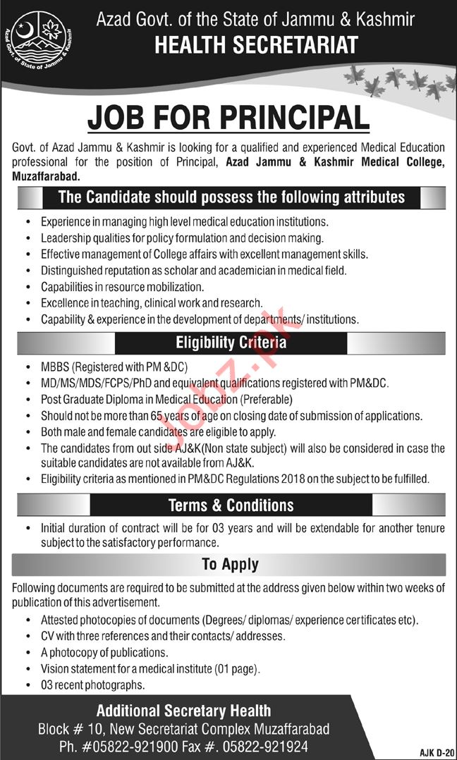 Azad Jammu & Kashmir Medical College Job For Principal