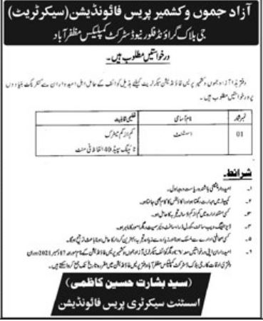 Vacancies in Azad Jammu & Kashmir Press Foundation Advertisement December 2021