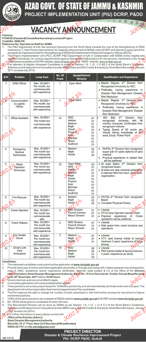 AZad Jammu & Kashmir Project Implementation Unit Jobs